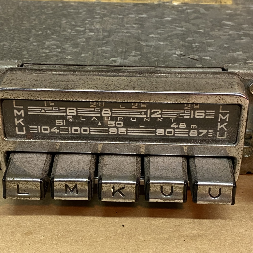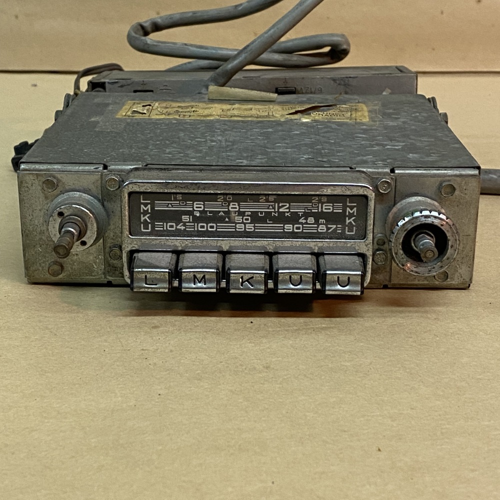 OEM Original. This is an original Blaupunkt AM/FM radio for Austin Healey 3000. This type of radio was used in other makes/models with different face plates, but this one is missing its faceplate and knobs. This is a dual 6V Positive Earth and 12V Negative Earth radio. The connections for positive and negative on the back pull out and you can flip them over to change between 6V and 12V and Positive/Negative Earth. We attempted to test this on 12V Negative earth and were not able to get the radio to power on, so it will need some attention to fix it. The buttons press in easily by hand and both knobs turn and click in/out. Please review all the pictures for overall condition and ask any questions prior to purchase. We may be able to find cheaper international shipping options, so message us for details. Thanks for shopping with us!