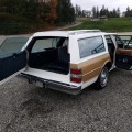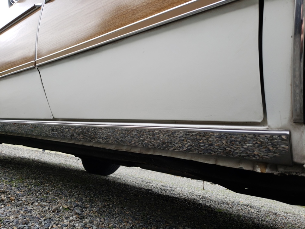 Curb appeal, she’s got plenty. The paint holds deep, strong and glossy. But upon close inspection you will find very small flaws as this is also believed to be mostly original paint. The wood panels are quite impressive. Most other estate wagons of this vintage would be peeling and scored by the many years of parking lot shopping cart abuse or arrant soccer balls. Very few small imperfections can be found. Chrome around the car is very bright and clear, the trim is straight and true, only a small bend can be found on the passenger side front door. The glass on the car is nice and clear with only tiny chips and a very faint scratch here and there.