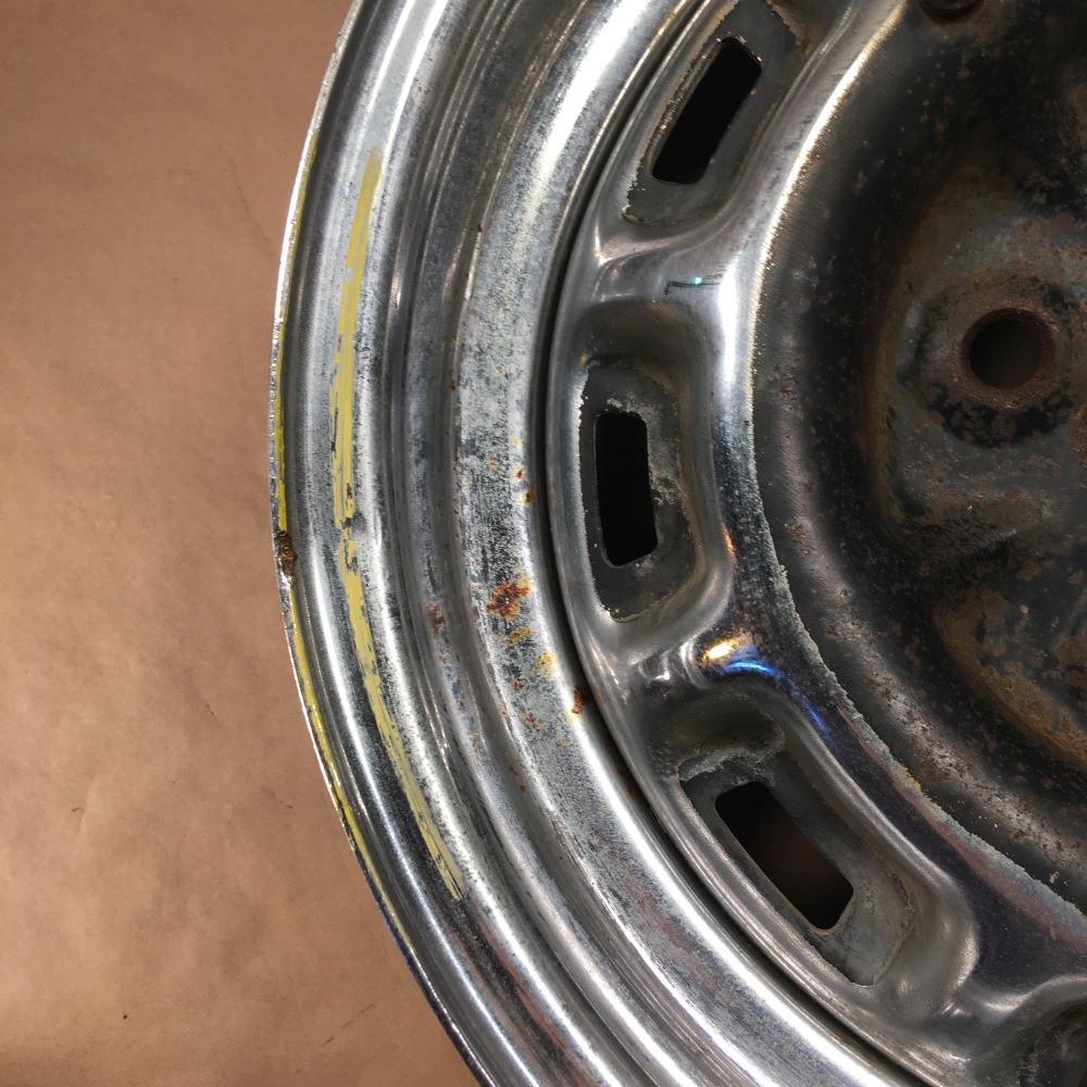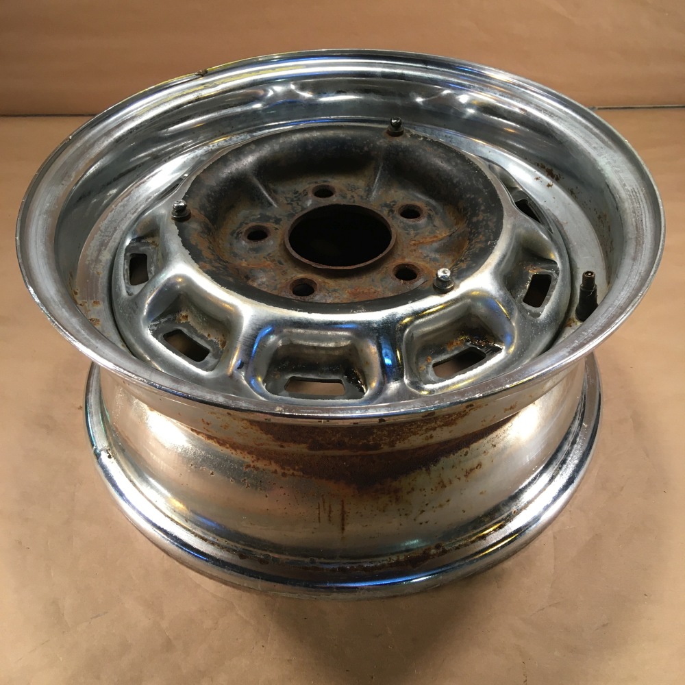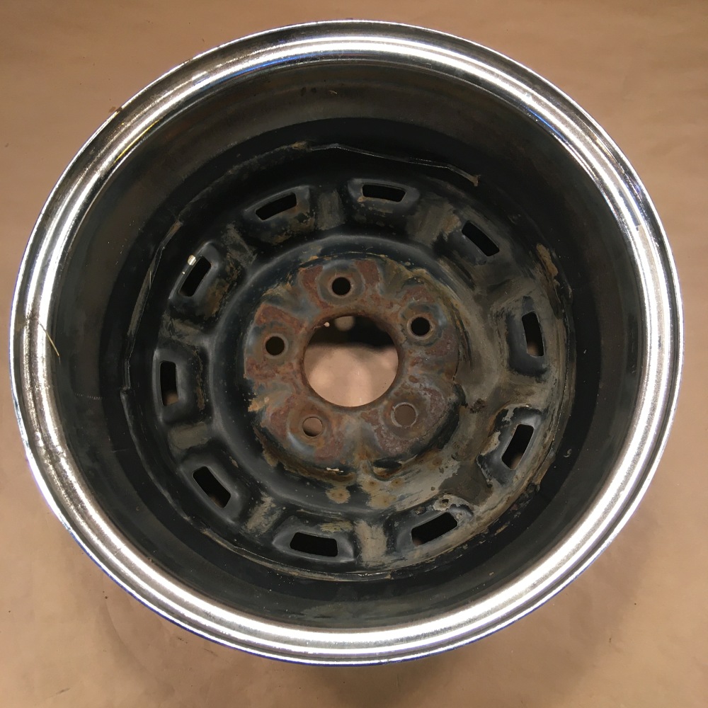 OEM Original 15x6 wheel. Item has some rust and a dent in the rim (see pictures 3&5). Please review all the pictures for overall condition and ask any questions prior to purchase.