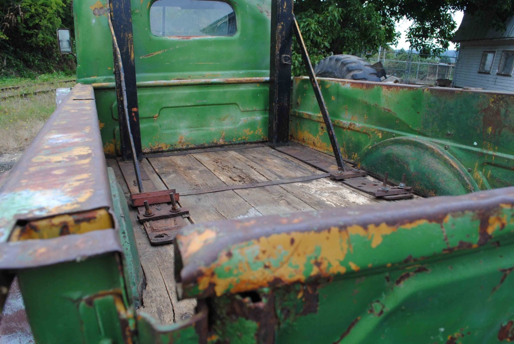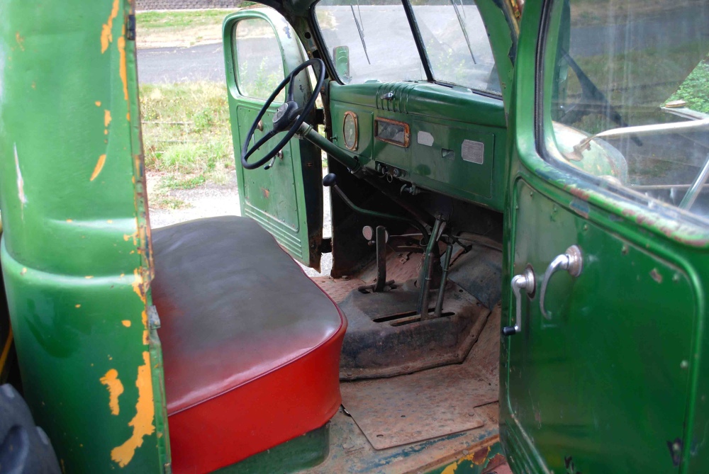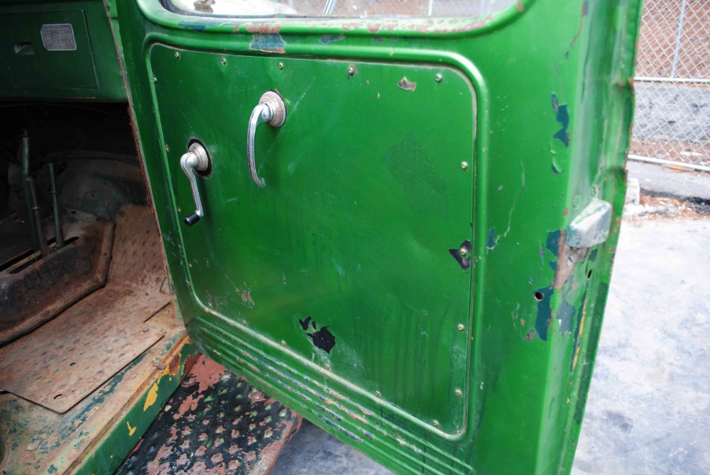 The body has a few dents and dings; it’s what you would expect out of a 50 year old farm truck. Nothing that can’t be repaired, but maybe leaving the truck the way it is, is the way to go, buyer’s choice. The most noteworthy of body issues would include: a couple dents on top of the cab, radiator cowl, side steps and tailgate. The bed is in nice shape the wood is still pretty solid, but shows sign of wear. There’s some surface rust around the truck, but no major cancer to report. The glass is all there, windows roll up and down, they have some bubbling from age and the front windshield has a couple cracks. The window cowl a common rust spot looks to be very solid.